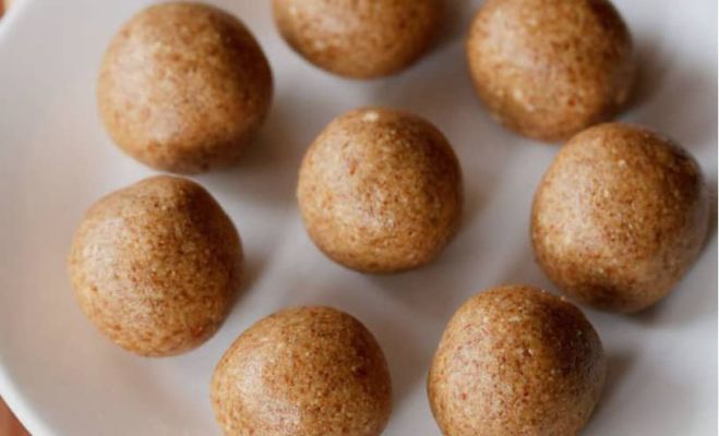 இப்போது சிறு சிறு உருண்டையாக லட்டு பிடியுங்கள். இதை ஒரு காற்றுப்புகாத ஜாடியில் சேமித்து வைத்து சாப்பிடலாம்.